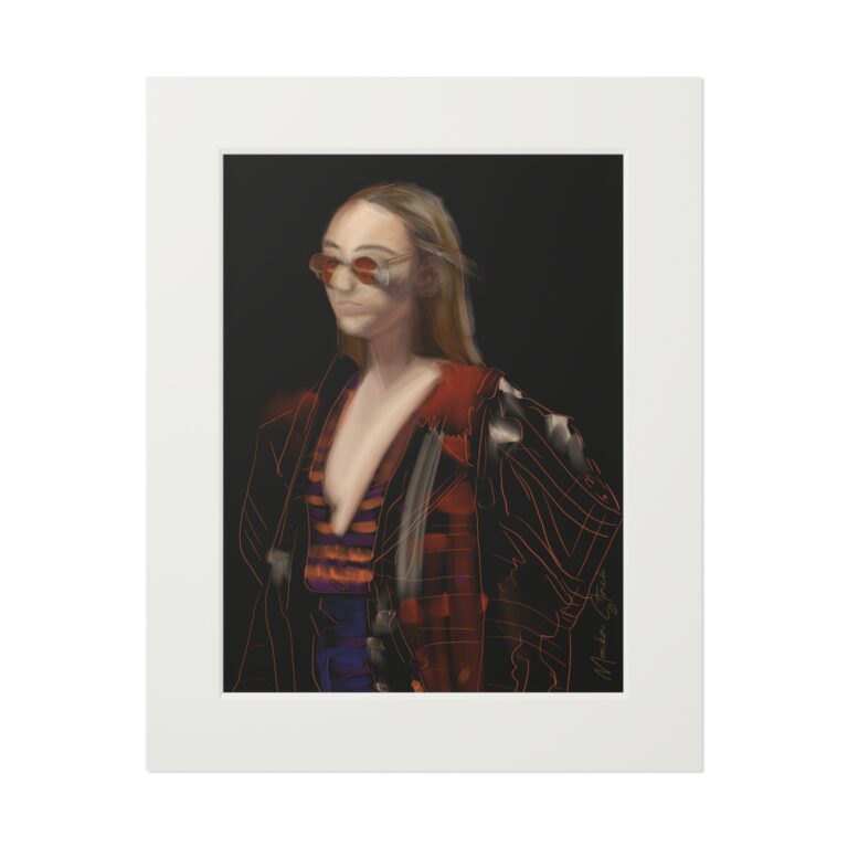 As the renowned filmmaker Derek Jarman once said, “Red protects itself. No colour is as territorial. It stakes a claim, it’s on the alert against the spectrum.” This sentiment beautifully aligns with the essence of “Girl with Red Sunglasses,” as the artwork embodies the power of standing your ground and asserting yourself in a world that often seeks to impose limits. The intense red not only represents passion and fire but also speaks to the subject’s commitment to protecting her individuality. This piece encourages viewers to embrace their confidence, prioritize their passions, and remain steadfast in their pursuit of personal goals, no matter the challenges they may face.